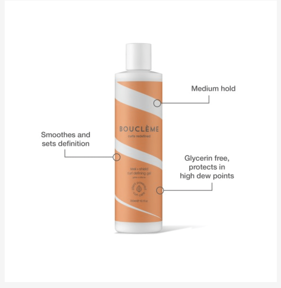 Bouclème Seal + Shield Gel fixeert je krullen, beschermt tegen vocht en zorgt voor langdurige hold met een natuurlijke glans.